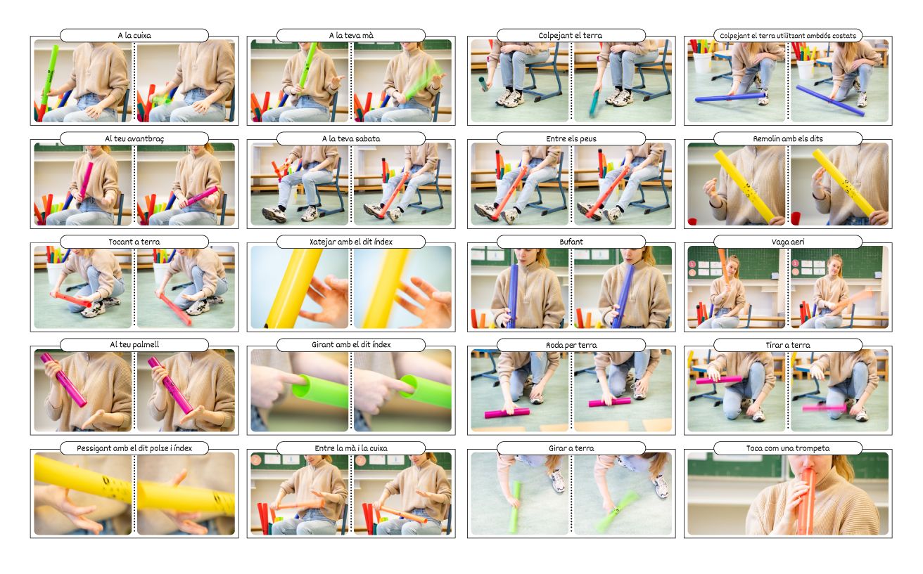 "Hi ha moltes maneres de tocar els boomwhackers. Us ensenyaré algunes tècniques diferents que podeu copiar."