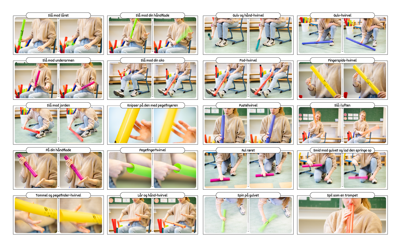 "Der er mange måder at spille boomwhackers på. Jeg viser først et par forskellige spilleteknikker, som I kan kopiere."